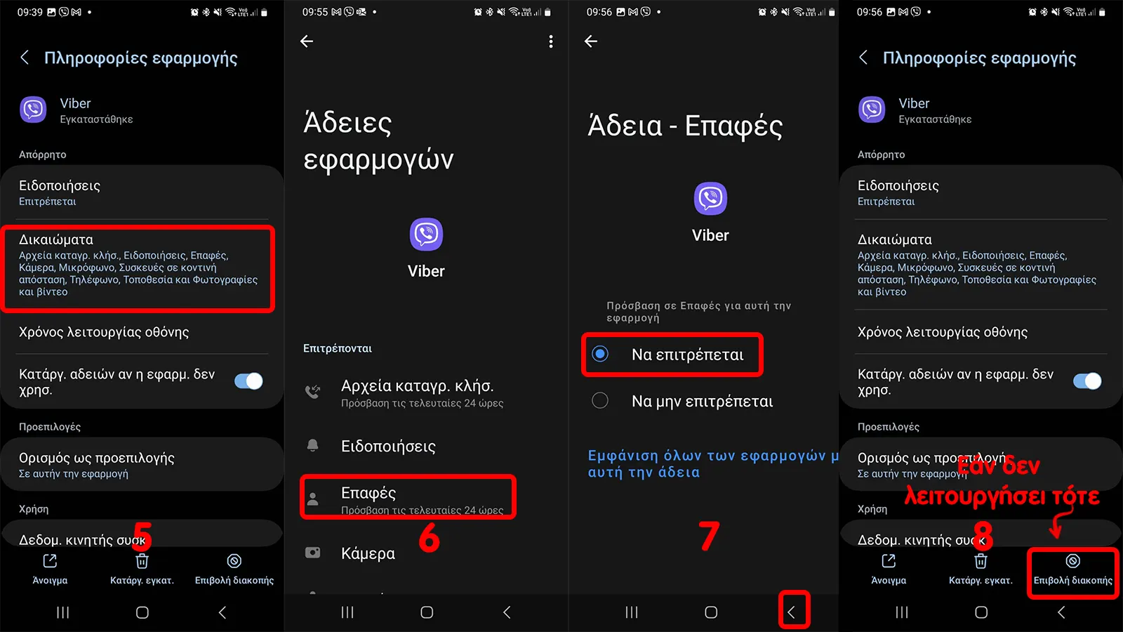 ΣΗΜΕΙΩΣΗ: Βεβαιωθείτε ότι έχετε δώσει τις απαραίτητες άδειες στο Viber για να έχει πρόσβαση στις επαφές σας.