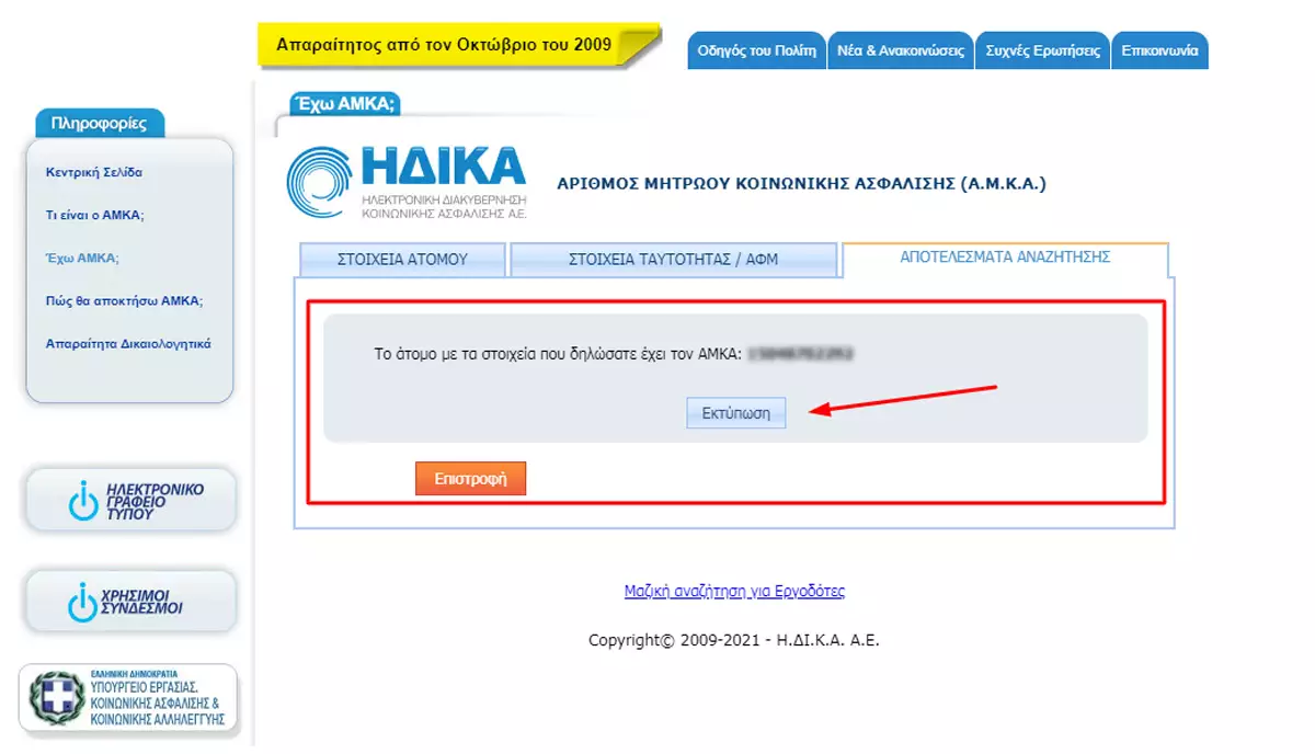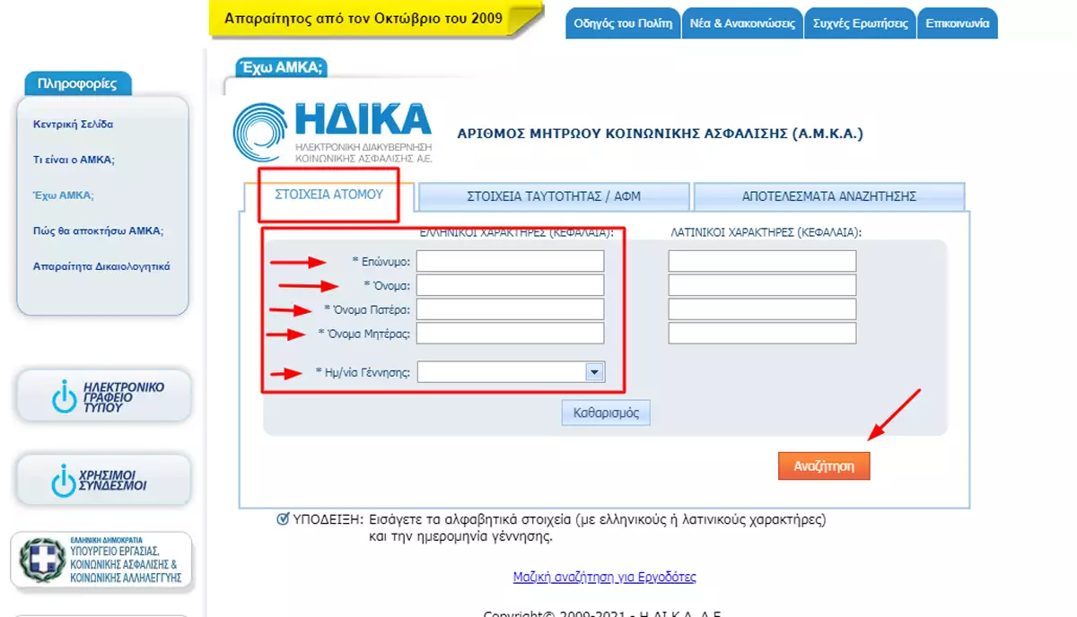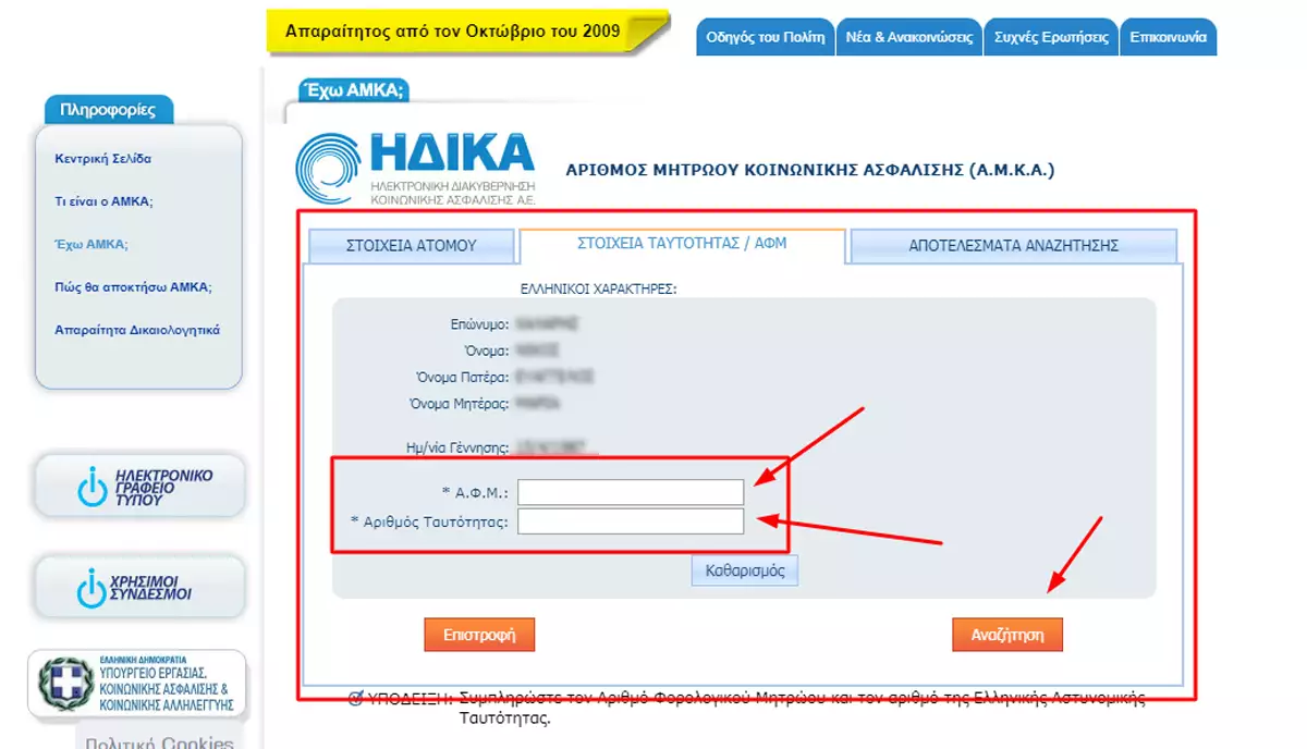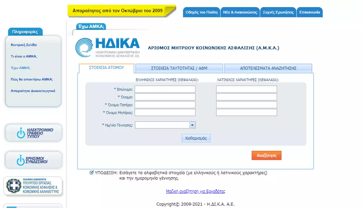 Διαδικασία online εύρεσης ΑΜΚΑ