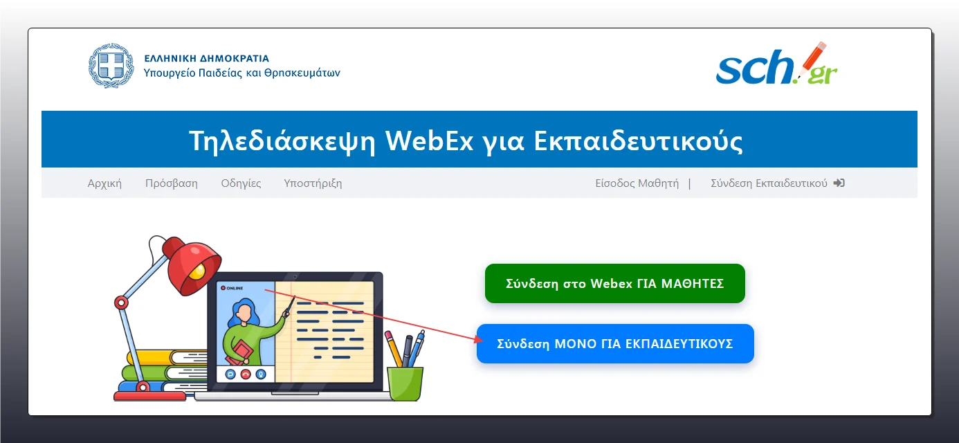 Το Υπουργείο Παιδείας παρέχει επίσημη σελίδα υποστήριξης για το Webex εδώ: