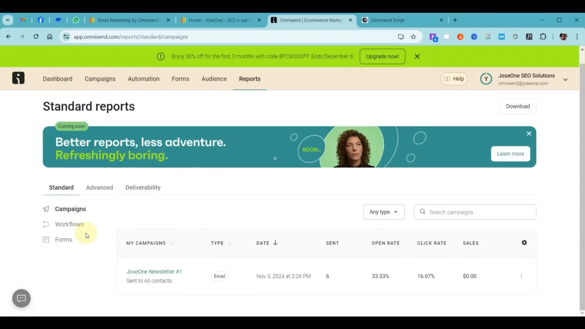 Η ανάλυση των δεδομένων σας είναι κρίσιμη για την επιτυχία της καμπάνιας σας. Χρησιμοποιήστε την ενότητα αναφορών του Omnisend για να παρακολουθήσετε τις καμπάνιες σας και να δείτε πώς αποδίδουν. Αυτό θα σας επιτρέψει να προσαρμόσετε τις στρατηγικές σας ανάλογα.
