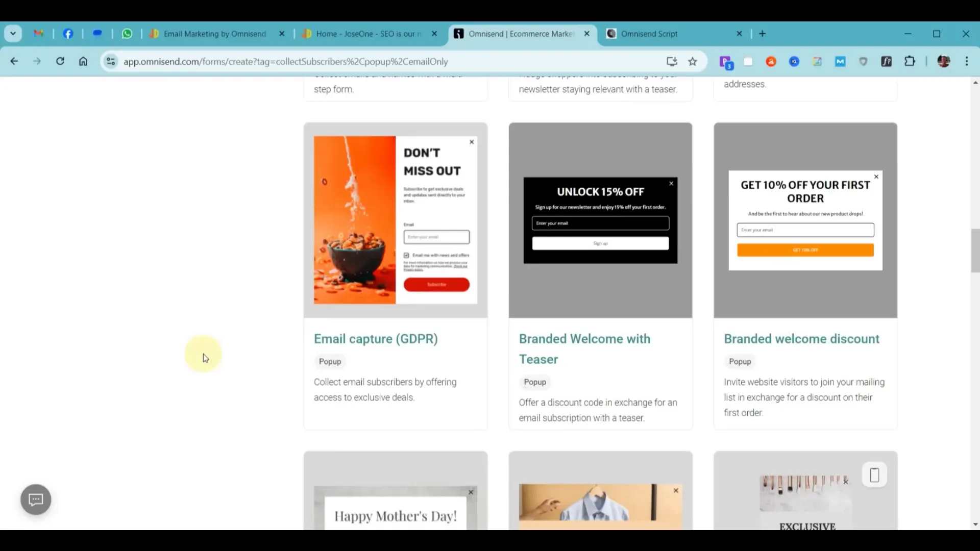 Η δημιουργία μιας popup form για desktop είναι σχεδόν παρόμοια με αυτήν για mobile, αλλά πρέπει να διασφαλίσουμε ότι είναι βελτιστοποιημένη για μεγαλύτερες οθόνες. Αρχικά, μπορούμε να επιλέξουμε το template που θέλουμε να χρησιμοποιήσουμε και να προσθέσουμε το περιεχόμενο που θέλουμε να εμφανίζεται.