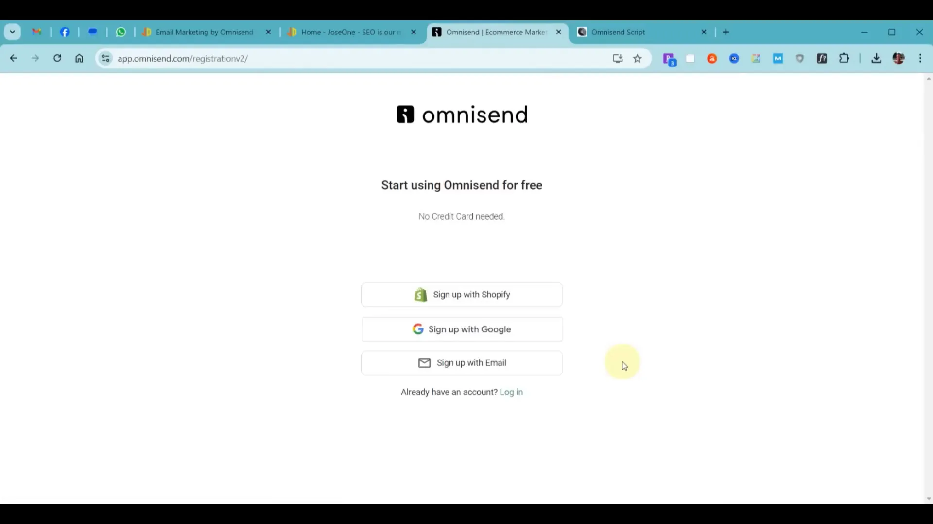 Τώρα είναι η ώρα να δημιουργήσετε ένα λογαριασμό στο Omnisend. Μεταβείτε στην ιστοσελίδα τους και επιλέξτε την επιλογή για δωρεάν εγγραφή. Συμπληρώστε τα απαραίτητα στοιχεία και επιλέξτε το πακέτο που σας ταιριάζει καλύτερα.