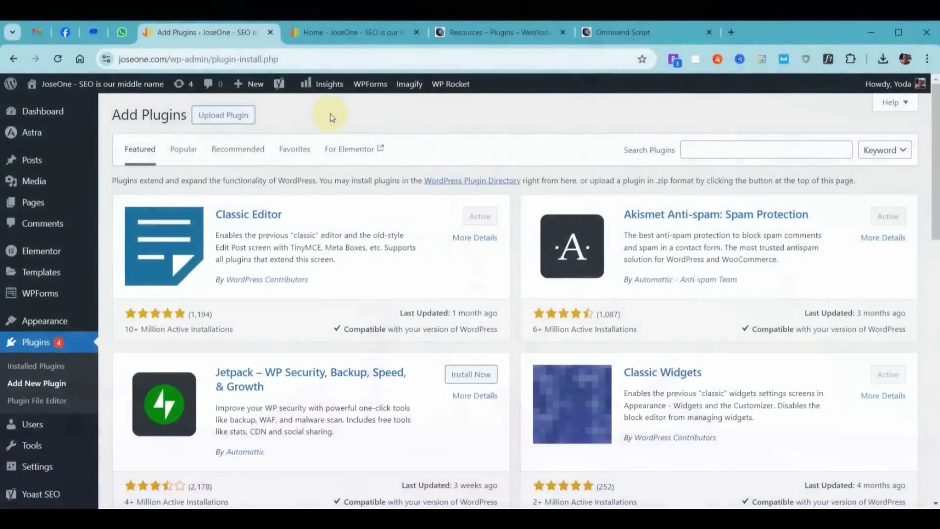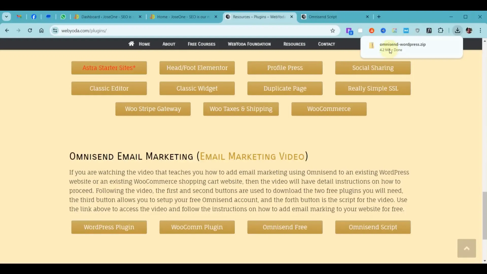 Στην τρίτη καρτέλα, πηγαίνετε στην ενότητα plugins. Αναζητήστε το Omnisend και κατεβάστε τα plugins που χρειάζεστε. Θα χρειαστείτε το WordPress plugin και το WooCommerce plugin αν σκοπεύετε να χρησιμοποιήσετε λειτουργίες ηλεκτρονικού εμπορίου.