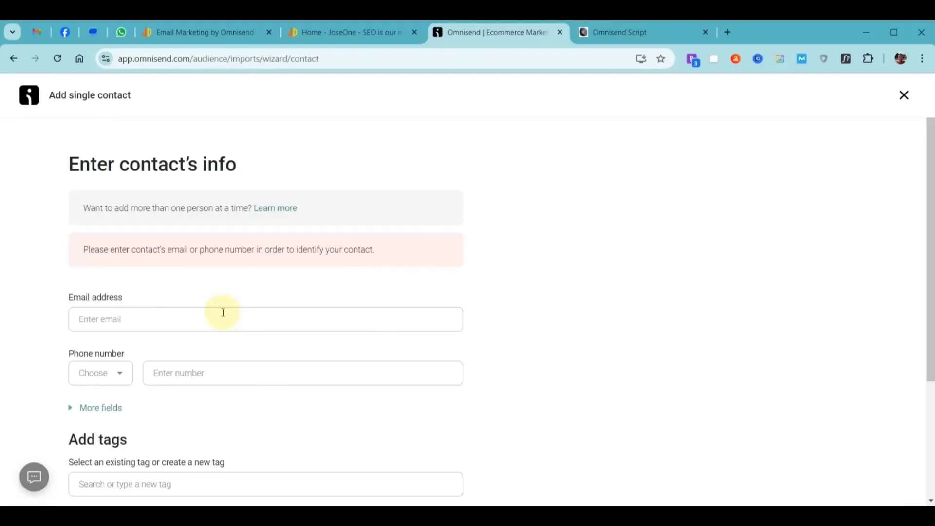 Τέλος, θα χρειαστεί να προσθέσετε επαφές στον λογαριασμό σας. Μπορείτε να το κάνετε αυτό είτε με την προσθήκη επαφών μία-μία είτε με την εισαγωγή μιας λίστας. Ακολουθήστε τις οδηγίες στο Omnisend για να προσθέσετε τις επαφές σας.