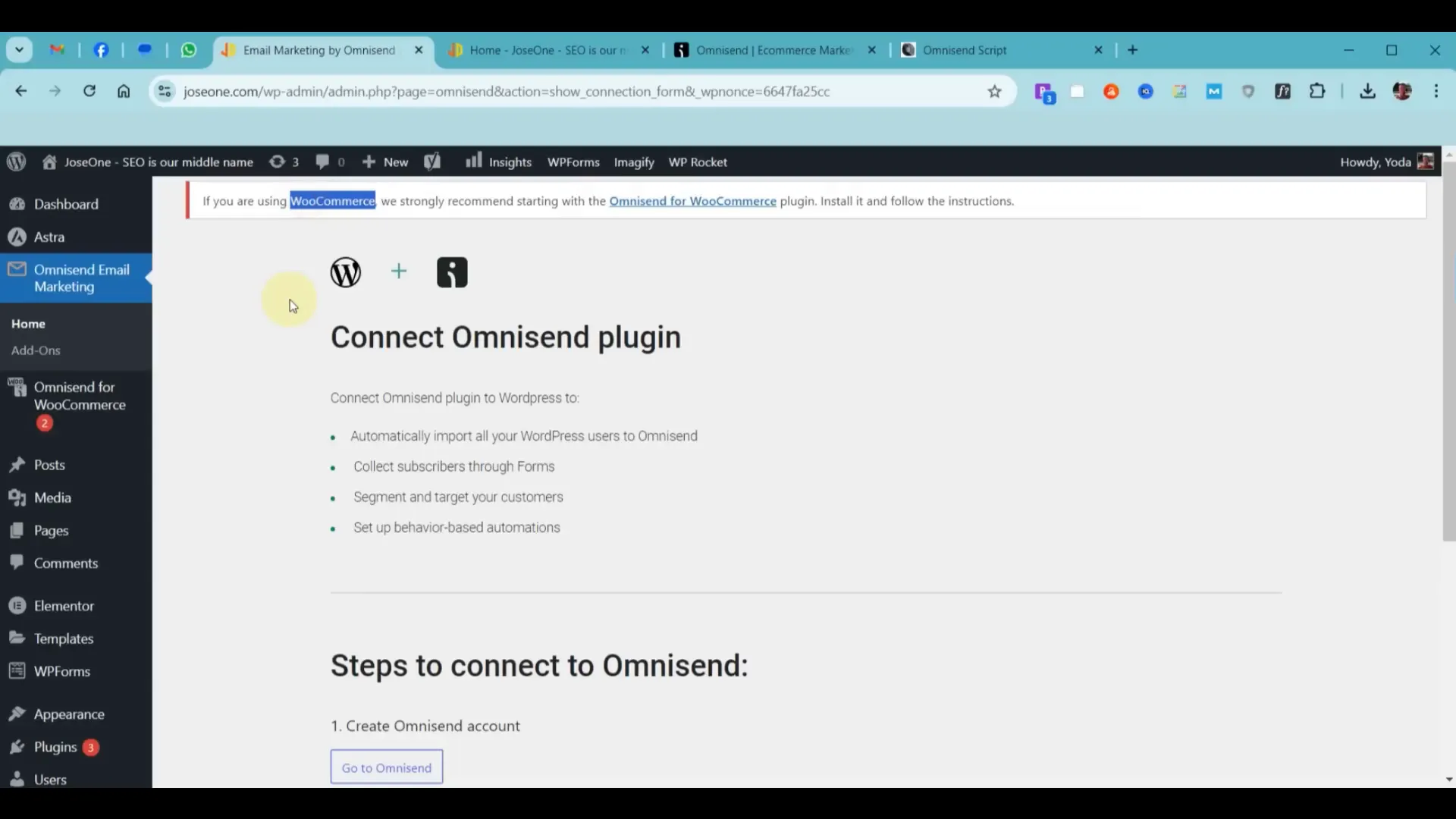 Βήμα 8: Σύνδεση WordPress με το Λογαριασμό Omnisend 🔗